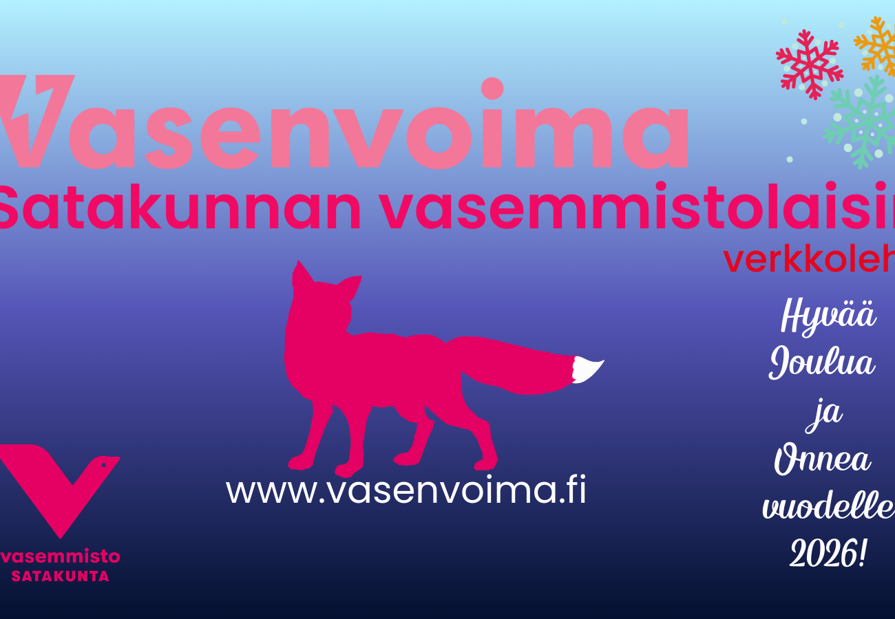 - 26.1.2024 Puoluesihteeri Anna Mäkipää, Huittisten Toripuoti klo 18–20 (Kappelikuja 1) Lue tarkemmat tiedot Vasenvoimasta.