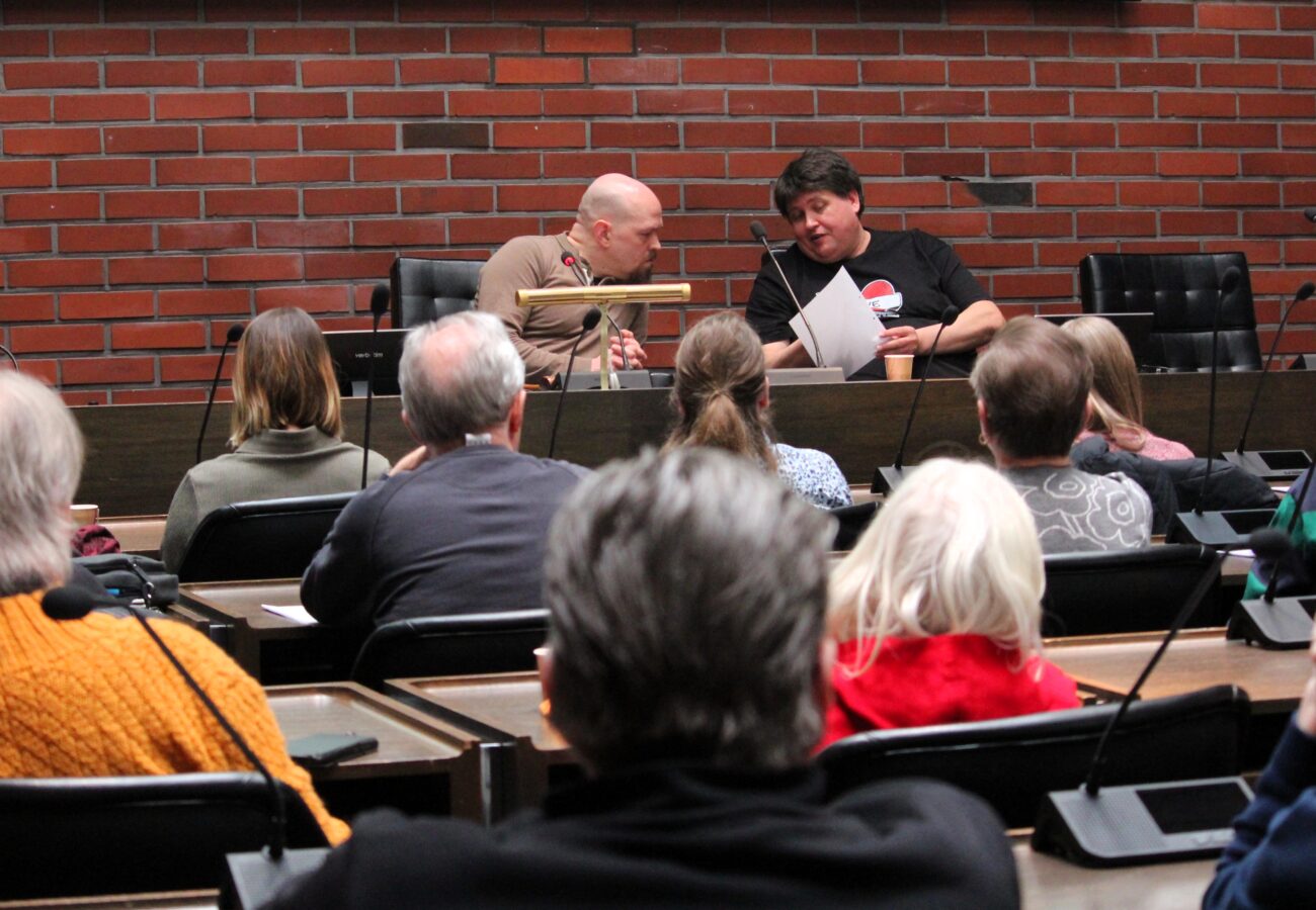 Satakunnan vasemmistoliitton aluevaltuustoryhmän puheenjohtaja Petri Salminen alusti Raumalla järjestetyssä avoimessa keskustelutilaisuudessa. HVA:n varavaltuutetuista paikalla olivat raumalaiset Lotta Hatakka ja Tapio Ailasmaa.