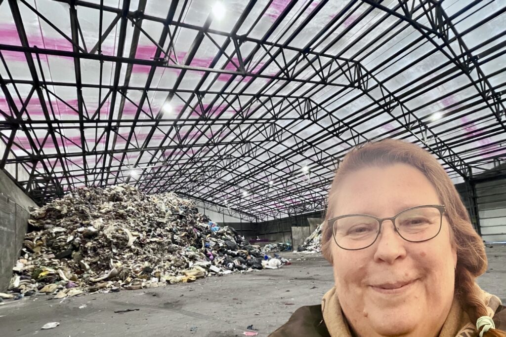 Aluksi kävimme lyhyellä tutustumiskäynnillä jätteen vastaanotossa sekä suuressa lajitteluhallissa, jossa huonekalurouheeseen sekoitettujen jäte- ja koirankakkapussien tuoksu oli huumaava.