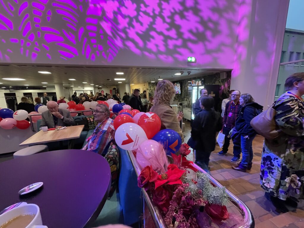 Meneillään on puolueen 35-vuotisjuhlat, joten tervehdyspuheenvuoroissa kuultiin riehakkaita kehuja ja onnitteluja eurooppalaisilta ja pohjoismaisilta yhteistyökumppaneilta.