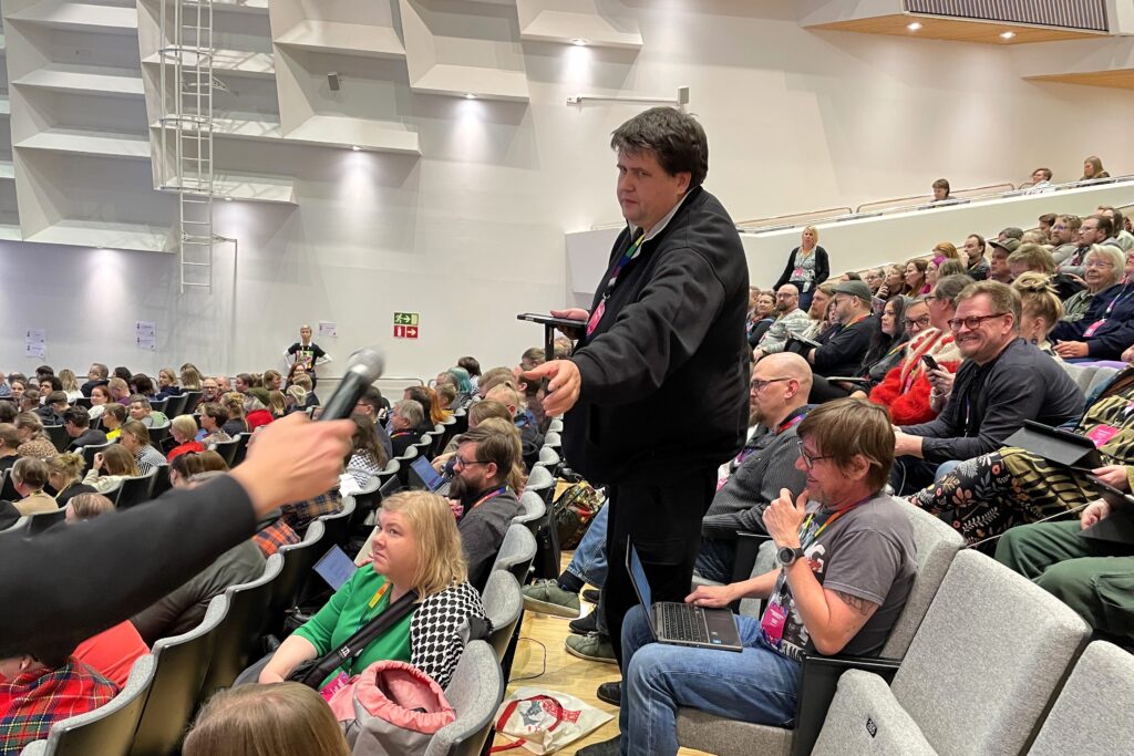 – Kun sähköistä äänestysjärjestelmää testattiin, kysyttiin monesko puoluekokous edustajalle on.