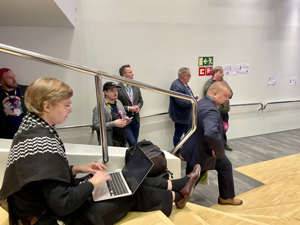 Omat iloiset meppimme ja eurooppalaisten sisarpuolueiden lähes riehkkaat tervehdykset antoivat oman mausteensa puoluekokouksen tunnelmaan.