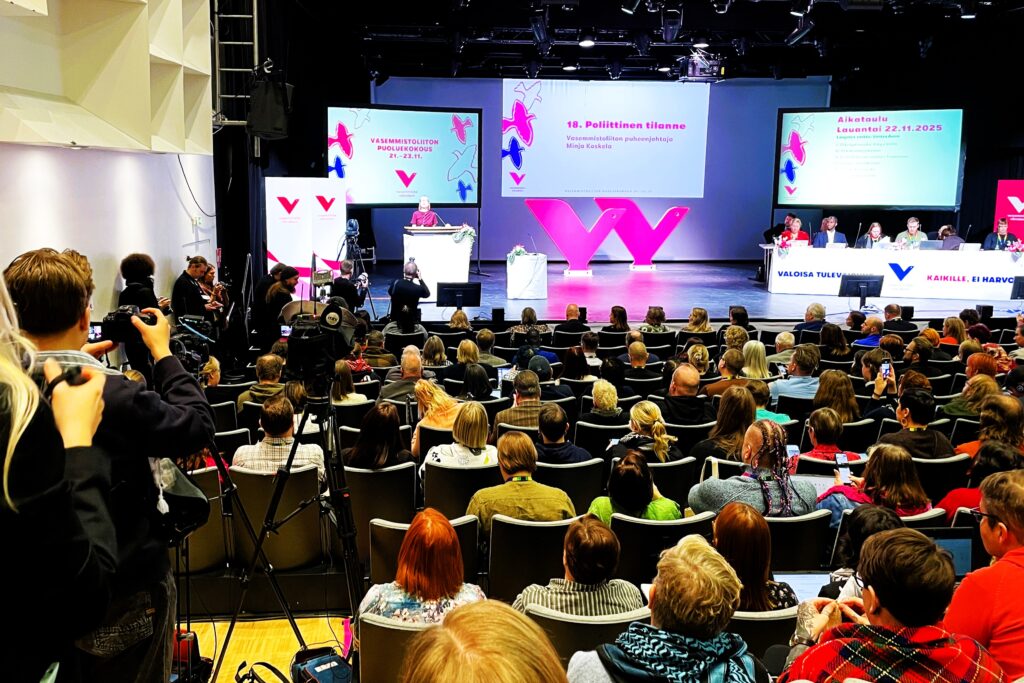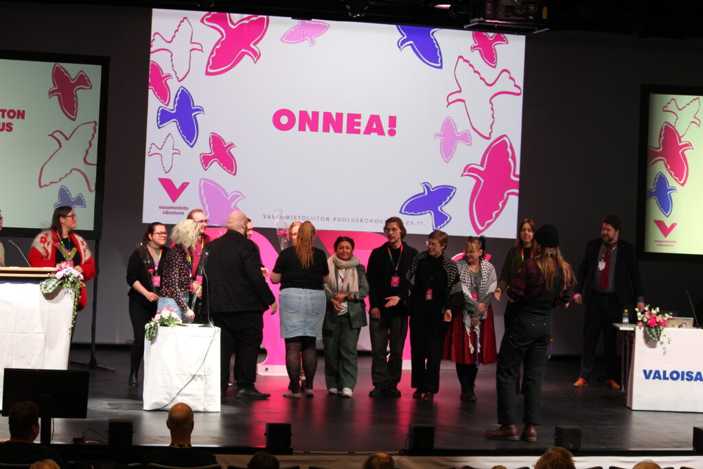 Kirjoittaja on Vasenvoiman vastaava toimittaja, joka oli edustajana 11. puoluekokouksessa Vantaalla. Hän vertasi tapahtumaa kylä- tai sukujuhlaan ja kutsui häpeilemättä puoluetovereita ensi kesänä SuomiAreenaan Poriin.