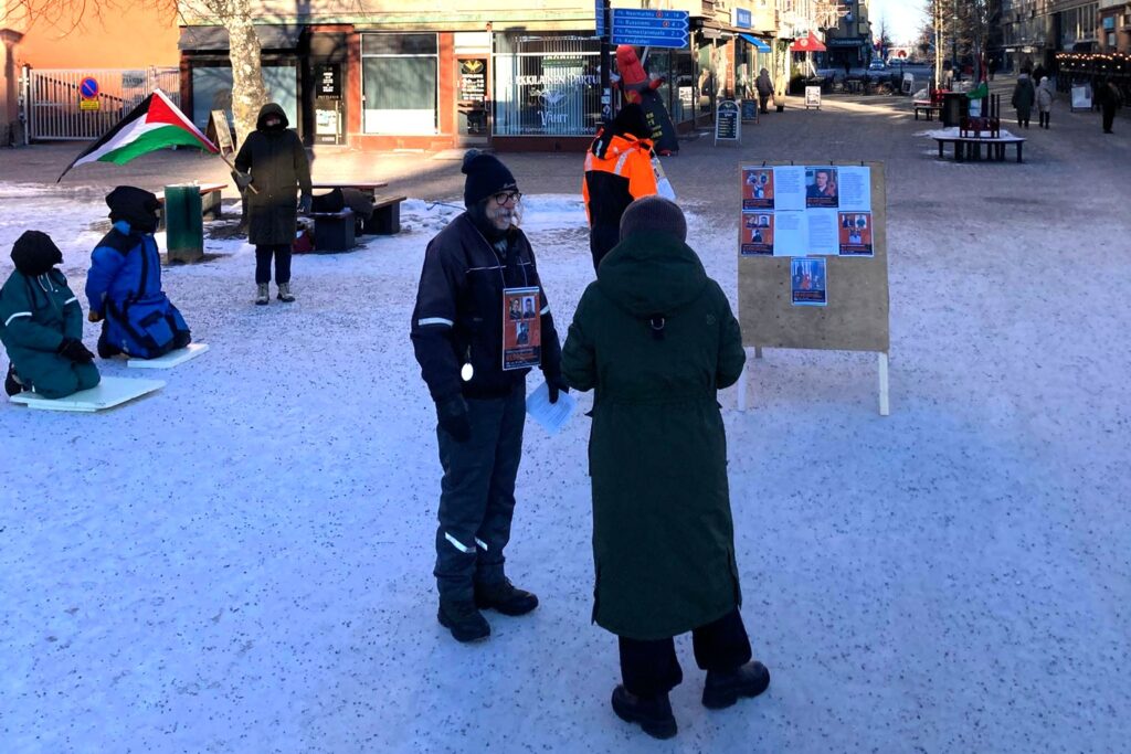 Satakunnan Rauhanpuolustajat ja Pori for Palestine -verkosto järjestivät lauantaina rauhanomaisen mielenosoituksen Eetunaukiolla Porissa.