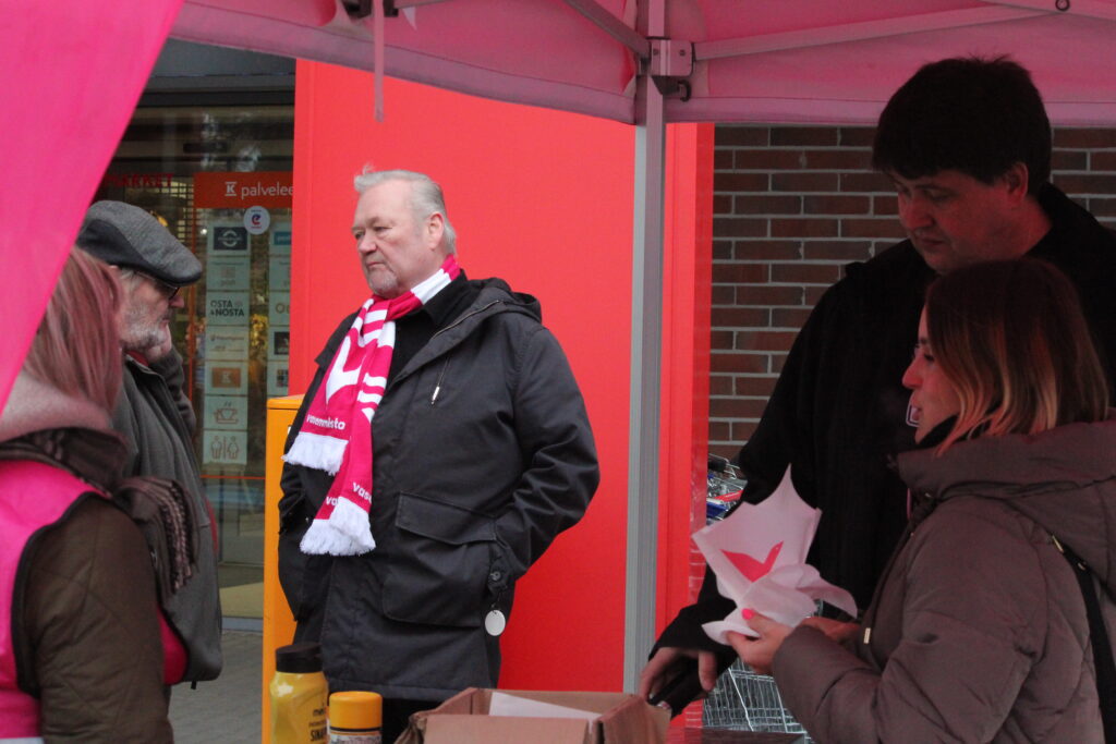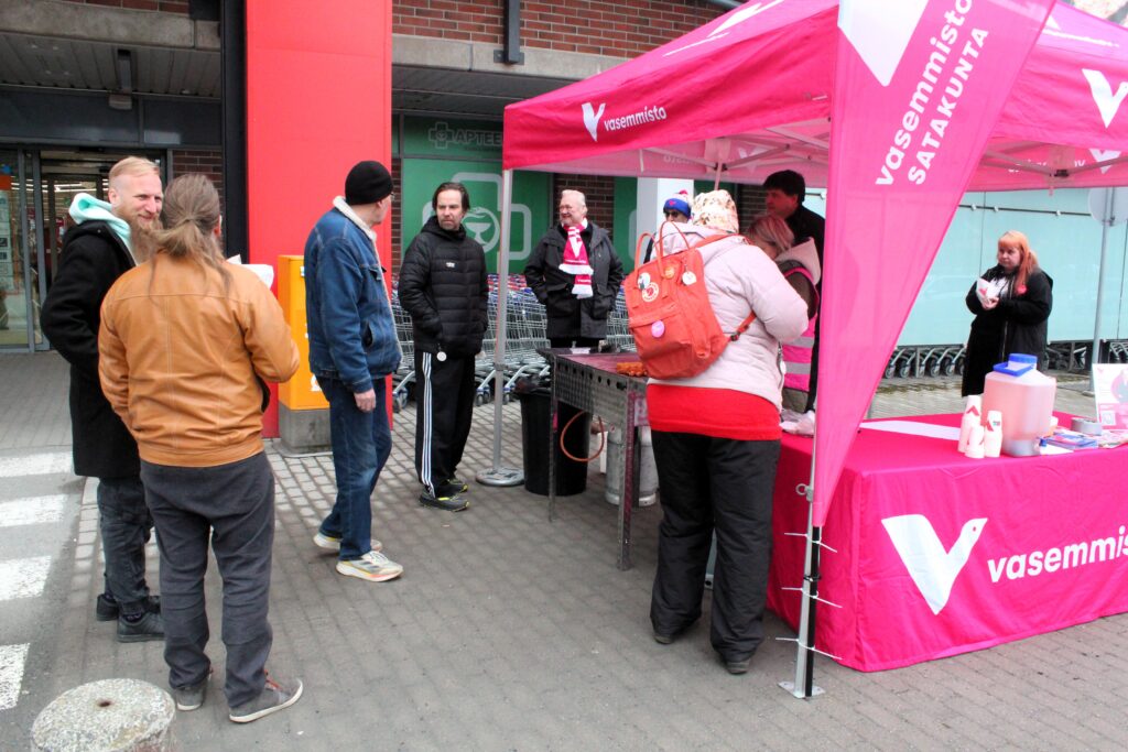 Aamupäivällä Satakunnan vasemmisto telttaili Kankaanpään Citymarketin edustalla.
