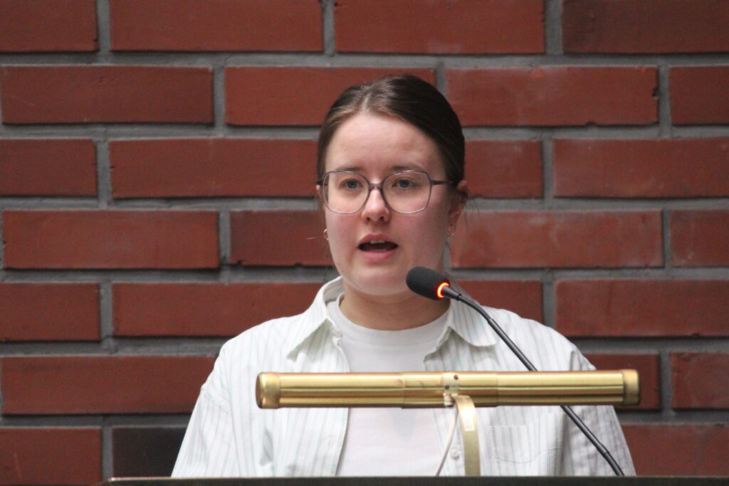 Harjavaltalainen ehdokas Nea Hakala puhui yleiskeskustelussa väkevästi.