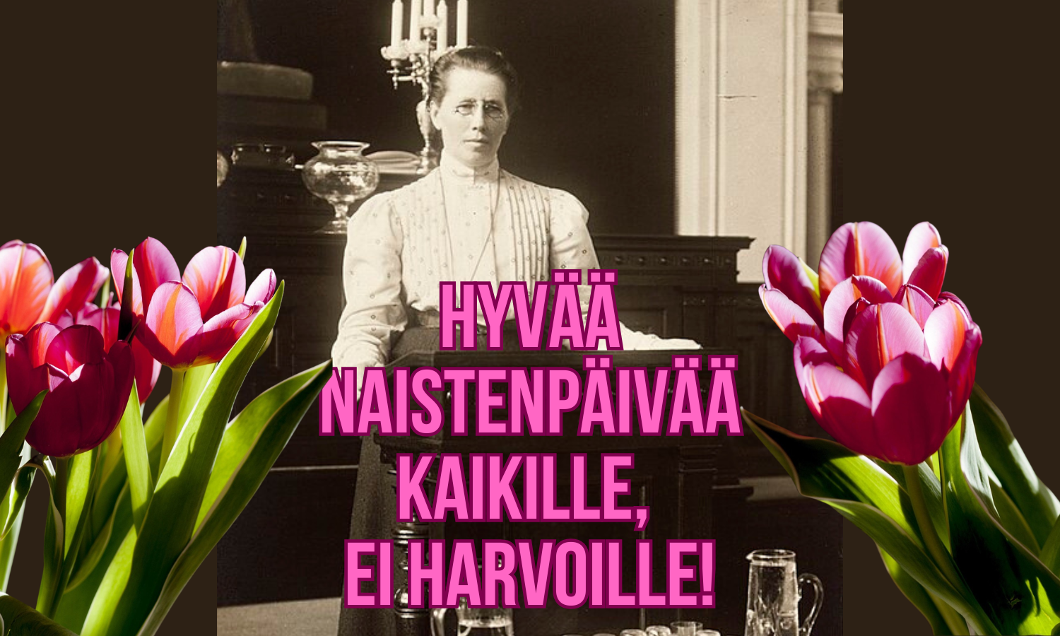 Euran vasemmisto toivottaa hyvää naistenpäivää tasapuolisesti kaikille! Tervehdystä kuvittaa Miina Sillanpään puhujakuva lähes 120 vuoden takaa. 1907 Suomi ei vielä ollut itsenäinen valtio.