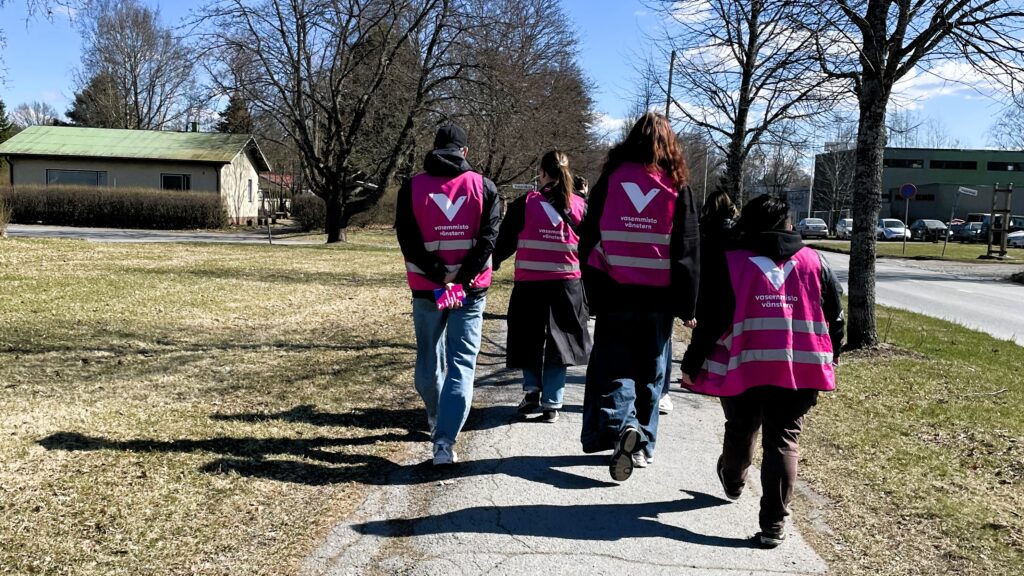 Vasemmisto kulki tällä kertaa kohtaamassa kansalaisia pientaloalueella. Aurinko paistoi ja monet Porin Toejoen asukkaista olivat pihatöissä.