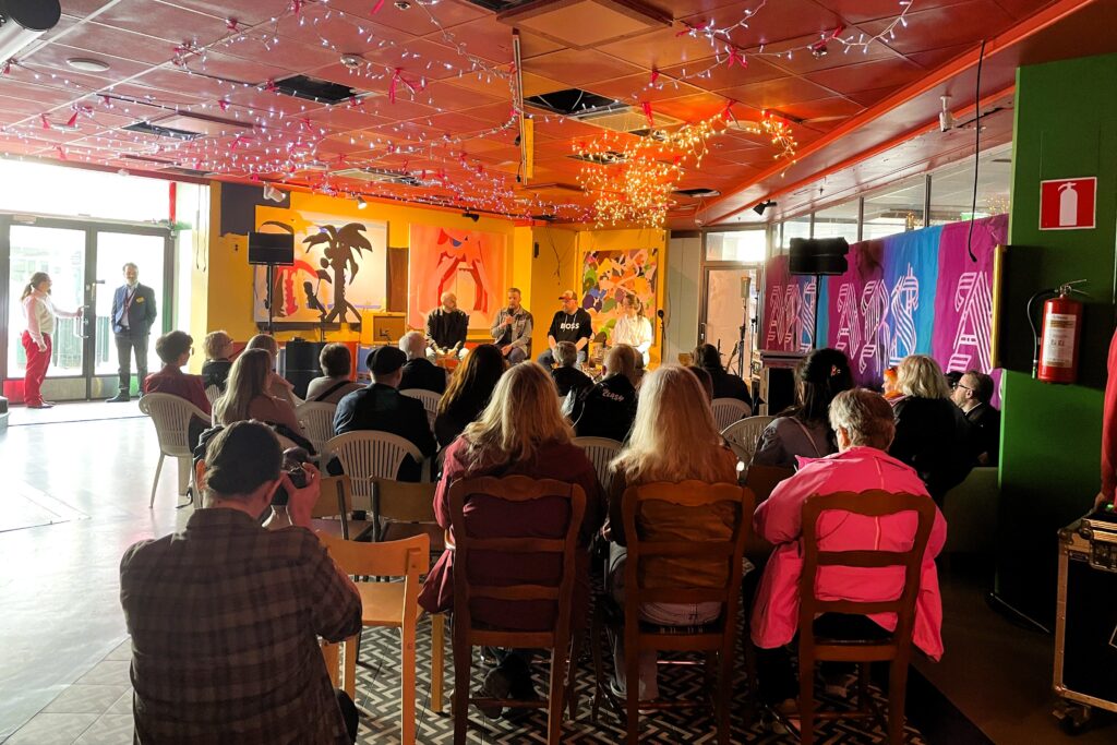 Ilta huipentui keskusteluun ja elävään musiikkiin Kaupunkiolohuoneen esteettömässä tilassa.