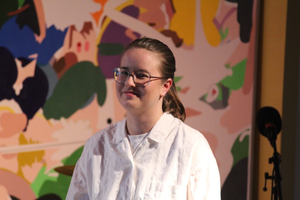 Porilainen ehdokas Mona Koski oli valinnut lausuttavakseen herkän runon.